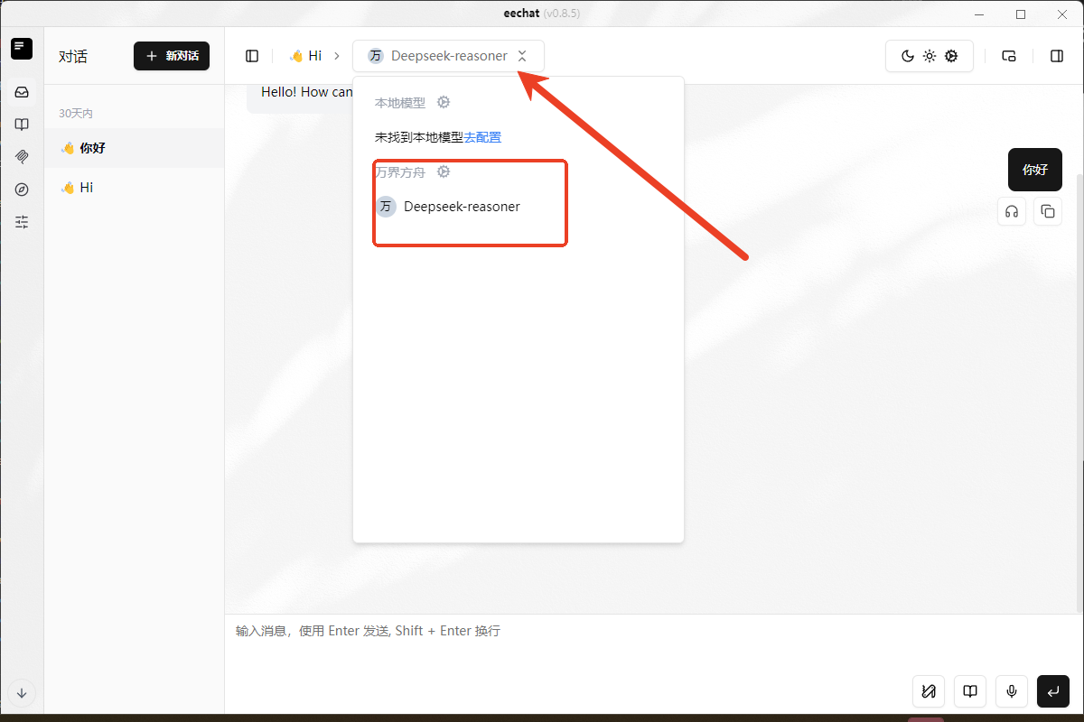 确保已安装 eechat 软件,并已进行 API 接入和模型调用。