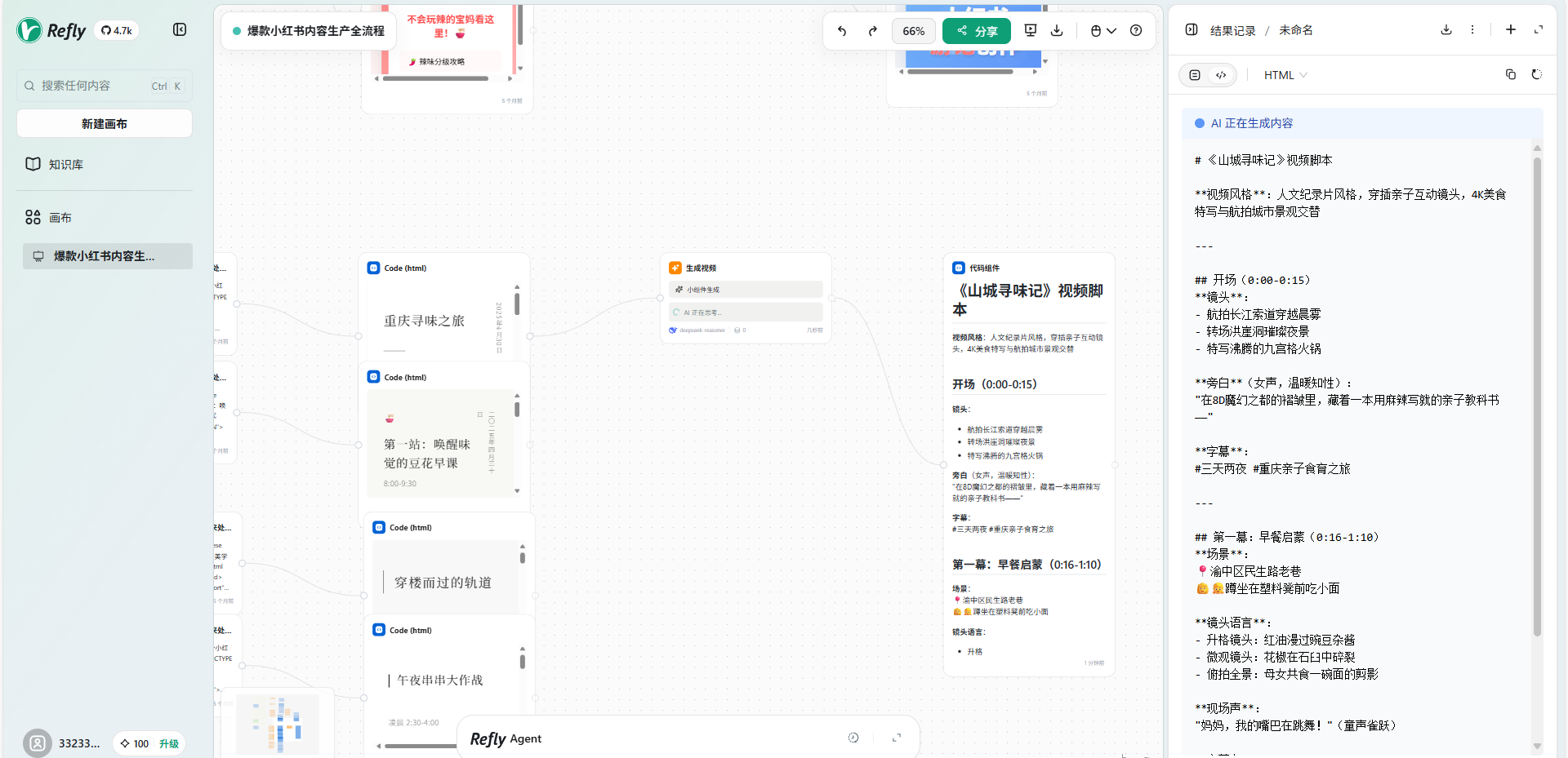 Refly 是开源、AI 原生的企业级内容创作引擎:以 MCP 为底座,把可视化工作流与 Agent 深度耦合,一键将灵感转化为可审计、可复用、可批量分发的智能流水线,自动产出高质量文档、PPT 与知识网页;内置生成式排版引擎,搜索、引用、改写、插图、排版、审校、发布及权限分级、多格式导出全程零切换、零上下文丢失,已成为 GitHub 4.5k+ Star 的可规模化内容基础设施。通过万界方舟模型即服务平台,DeepSeek、Kimi K2、Qwen 等模型可标准接入,自然语言指令实时转为文本、摘要、知识图谱或向量,全链路“对话+代理”双引擎驱动,助力企业低门槛、高可控地进入人机混编的新协作范式。